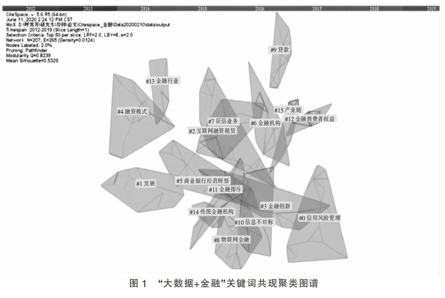 摘要:文章基于CNKI核心期刊数据库,利用CiteSpace对“大数据+金融”领域相关文献的关键词信息进行了聚类分析,并通过关键词突现探究了发展脉络及前沿热点。结果表明,当前研究热点为信用风险研究和金融创新(互联网金融、银行转型、金融科技等);“大数据+金融”领域研究前沿发展可以明显划分为两个阶段,其中金融科技为热点前沿,并有继续成为该领域研究热点的趋势。 关键词:大数据;知识图谱;互联