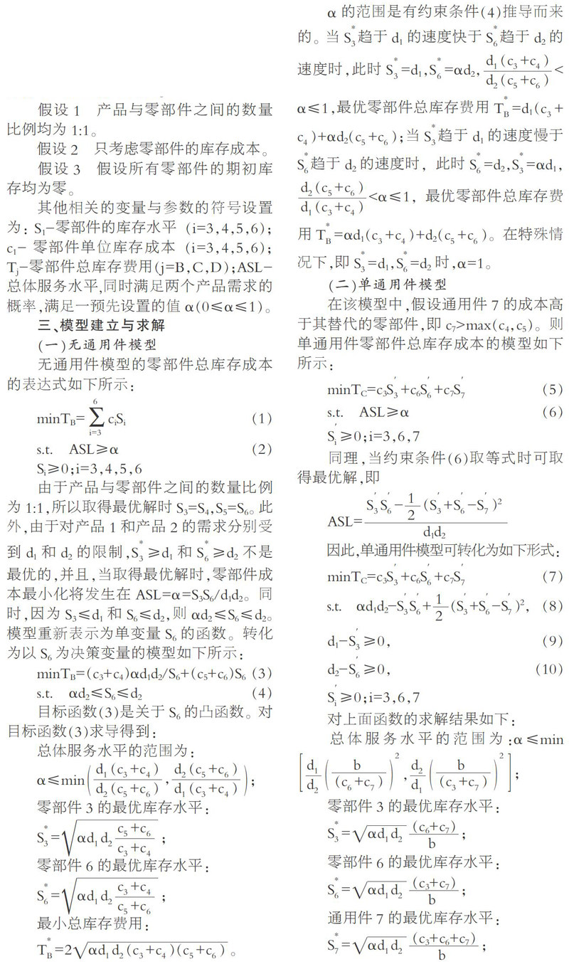摘要:文章研究了通用件对单周期模型的影响。分析了用通用件替代不同零部件的经济意义。通过比较三个模型的库存成本,表明在一般和特定的零部件成本结构下,某些形式的通用化并不总是首选的策略。此外,提出了不应使用通用件的条件,并对结论进行了扩展。 关键词:单周期;库存;服务水平;通用性 一、引言 在当今的市场环境下,为响应顾客多样化的产品需求,通用件的作用得到高度重视。许多公司减少供应