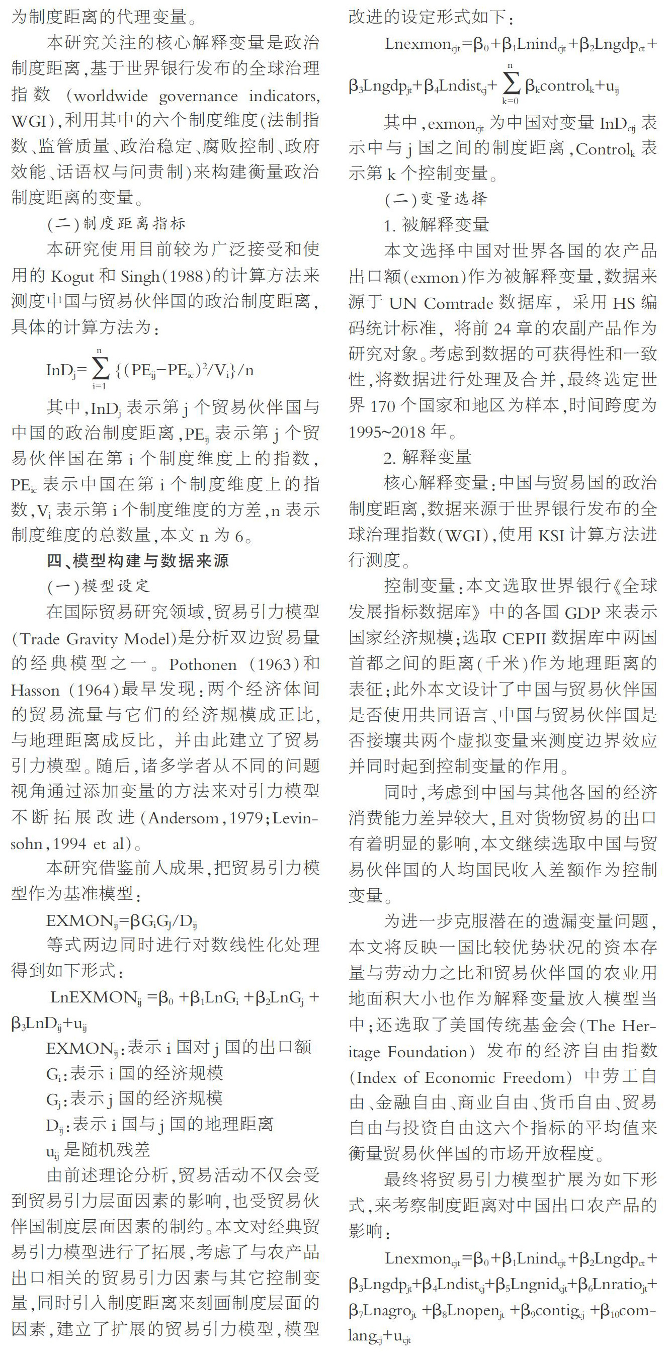 制度距离、贸易引力与中国农产品出口