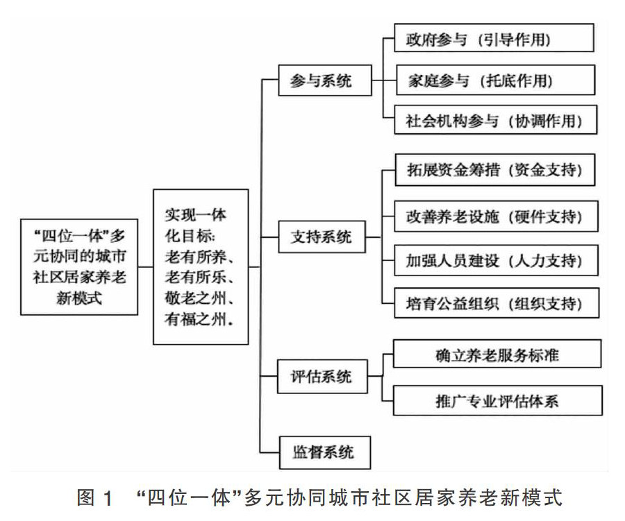摘要:文章基于“多元协同”视域,研究城市社区居家养老模式,以福州市为例,通过构建以养老服务为核心内容,主体参与为前提,支持系统为物质基础,监督管理系统和评估系统为保障的“多元协同一体化”社区居家养老模式,用于应对新时代养老问题。 关键词:社区居家养老;多元协同一体化;福州市 一、引言 人口老龄化问题己发展成全球性的问题,我国作为世界人口第一大国,人口问题尤为显著,目前,中国老
