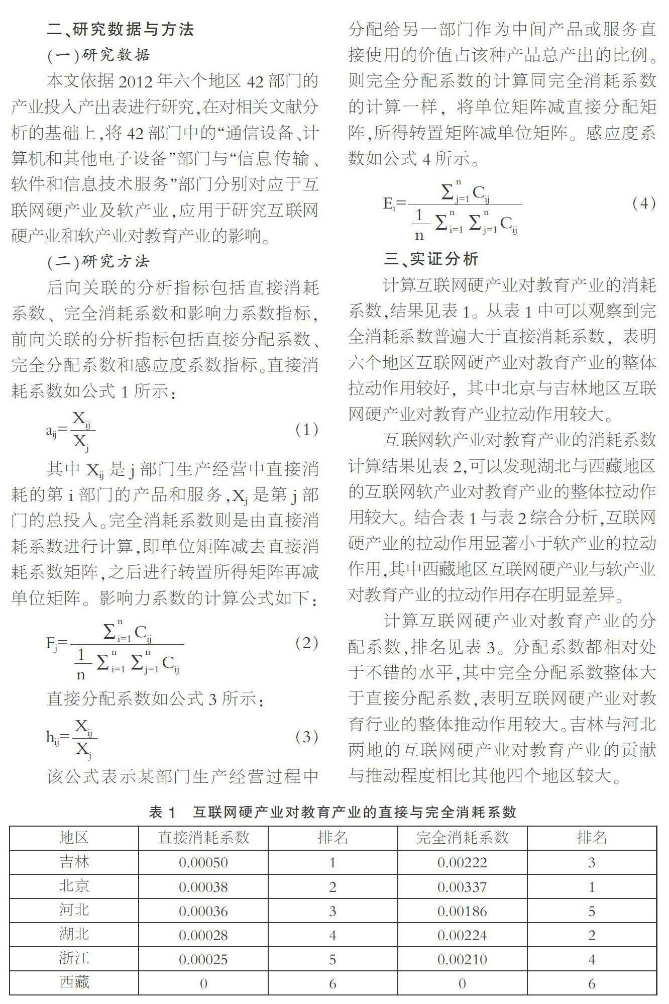 摘要:互联网时代背景下,其相关产业对社会经济产生巨大的影响。文章依据京冀鄂浙吉藏六个区域的2012年投入产出表,从后向关联与前向关联两大方向出发,以教育行业为例研究互联网产业对第三产业的影响。研究结果表明,西藏互联网软产业对该地区产业经济拉动与推动的程度远大于互联网硬产业对产业经济作用的程度。北京、吉林地区互联网硬产业与湖北、西藏地区互联网软产业对教育产业拉动作用较大;吉林、河北两地的互联网硬