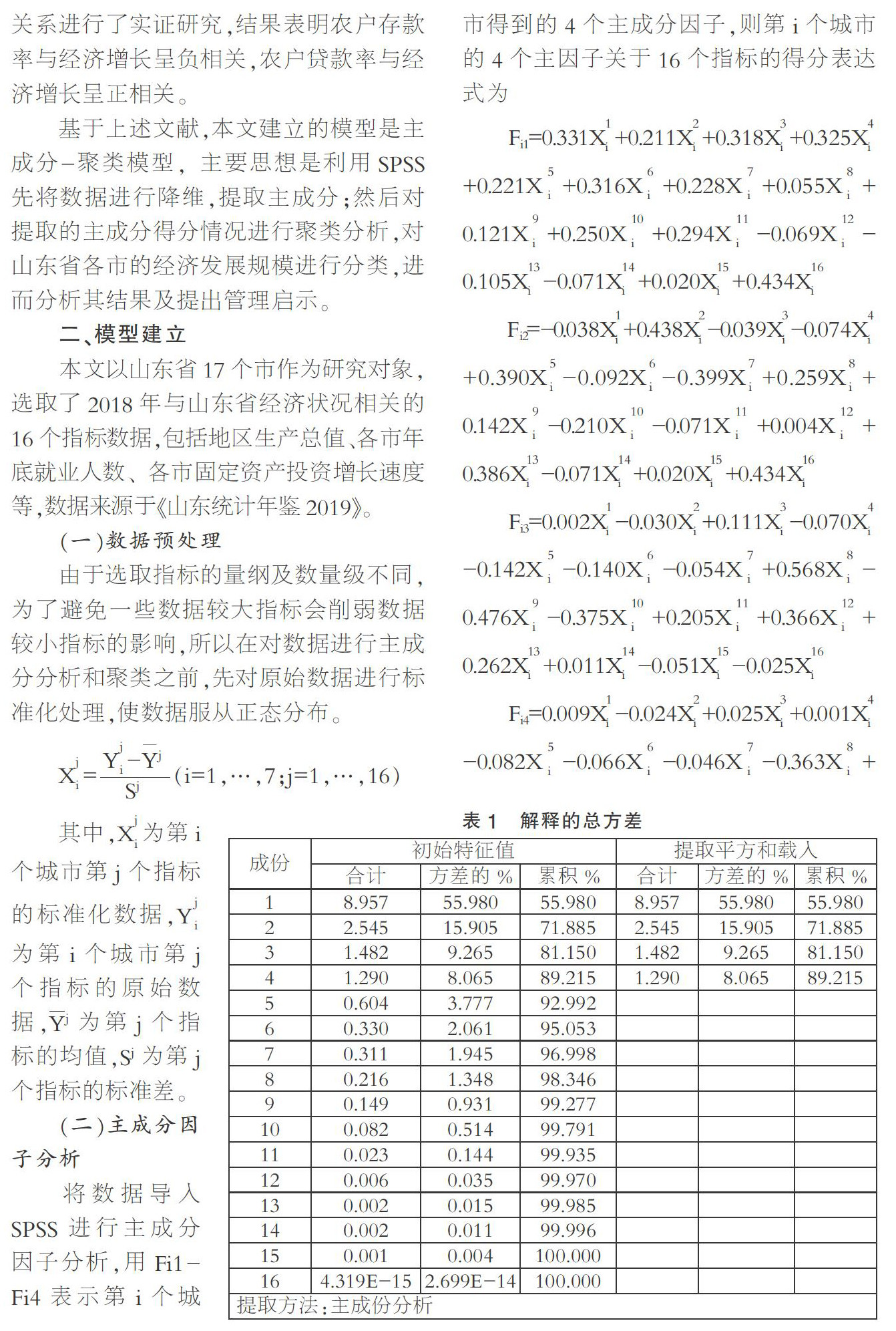 基于主成分-聚类分析的山东省经济状况研究