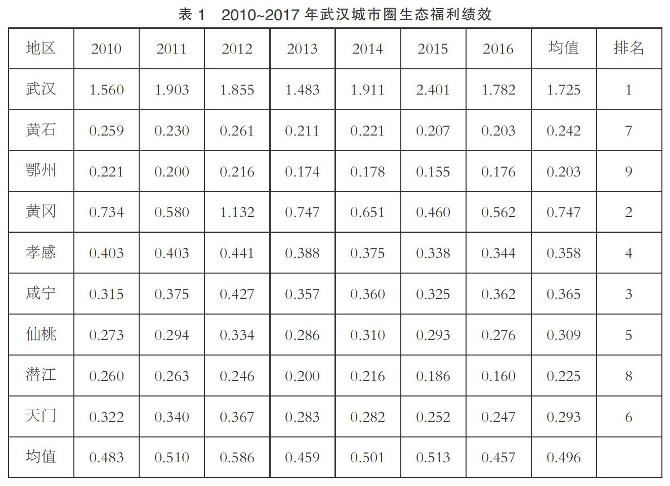 武汉城市圈生态福利绩效测度分析