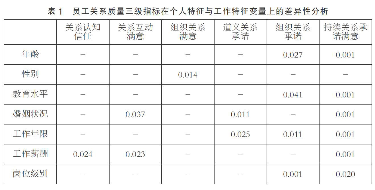 个人特征与工作特征对员工关系质量的影响研究