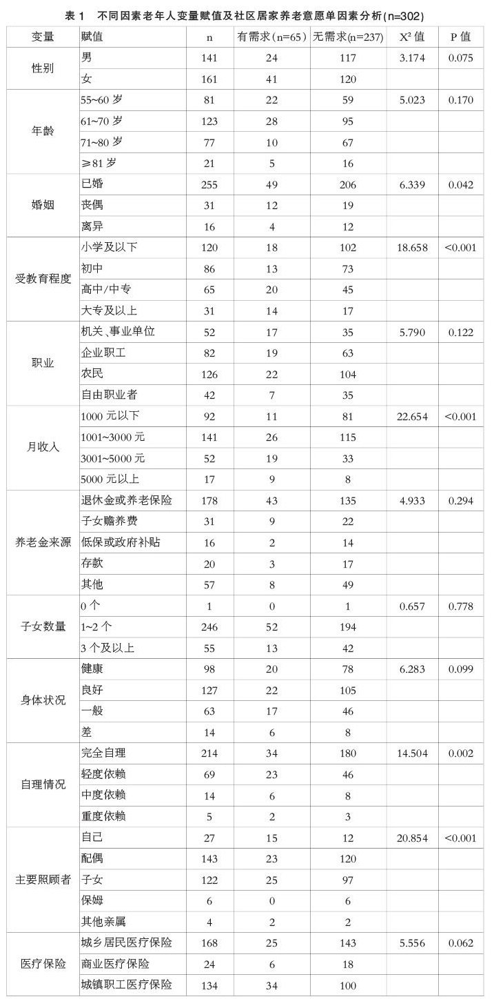摘要:目的:了解泰安市老年人社区居家养老服务需求,并探索其影响因素。方法:随机抽取泰安市320名老年人进行问卷调查。结果:配餐服务、突发疾病紧急救助及娱乐活动需求分别是三类养老服务中需求最多;婚姻状态、受教育程度等5个因素对老年人社区居家养老意愿的影响有统计学意义。结论:泰安市老年人对社区居家养老服务需求较高,受多种因素影响。应以老年人的养老需求为导向,提供多样化、个性化社区居家养老服务。