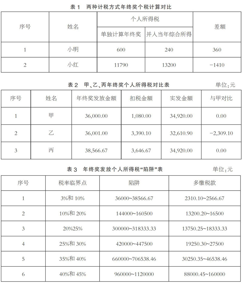 摘要:年终奖是企业针对员工一年来工作业绩的表现,给予员工的一次性奖励。文章针对新个人所得税法施行以后,年终奖个税的计算方式进行了探讨,合理合规的利用税收政策,避免年终奖陷阱,达到员工“多发钱、少缴税”的目的。 关键词:年终奖;个人所得税;避税 一、年终奖个人所得税 个人所得税是以自然人取得的各类应税所得为征税对象而征收的一种所得税。自1980年9月10日全国人大通过《中华人民