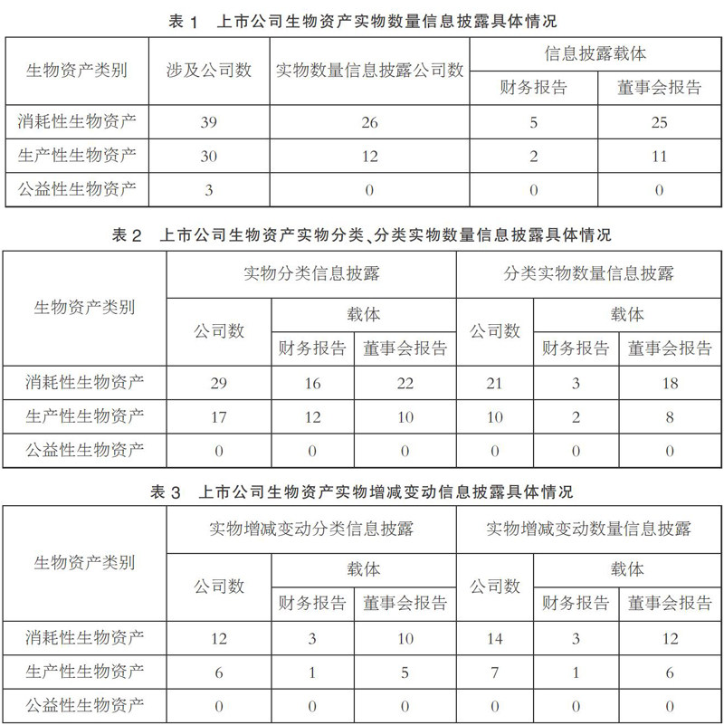摘要:生物资产实物数量的充分披露,是信息使用者有效判断企业会计核算是否合理和生物资产未来生物转化能力的基础。依据生物资产准则规定的相应信息披露要求,文章对农业类上市公司2018年年报中生物资产实物数量信息披露状况进行分析,提出通过完善生物资产准则、提升从业人员业务能力、规范信息披露行为、加强违规披露监管和惩处力度来提高信息披露质量。 关键词:生物资产;实物数量;信息披露;农业上市公司