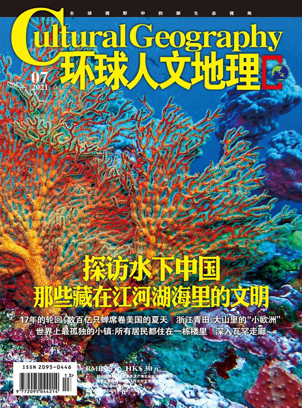 中国的水下世界,是游鱼、水草和珊瑚的生态世界,也是存放人文情感之地。左页上图,如玉般镶嵌在崇山中的抚仙湖,一片清澈湖水下,深藏着四千年的时光,如此神秘而迷人。左页下图,福建连江的海水碧波万顷,广西溶洞清凉静谧,东南沿海蔚蓝色深海里还有多彩花园,这一切正等待着我们去探索。 中国幅员辽阔,拥有众多江河湖泊和辽阔的海域,但是水下世界却一直