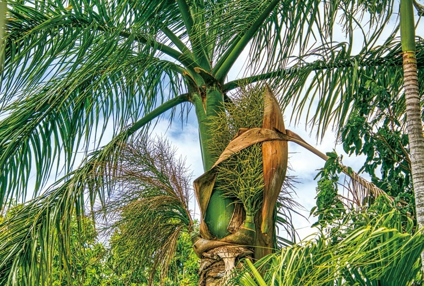 左页图,喀斯特地貌是一扇扇石屏,山间延绵起伏的绿、天空剔透澄明的蓝,构成一幅大气壮美的山水画。右页上图,都安河池地下河天窗像两颗浓翠欲滴的宝石,照映着葱茏树影。 远古时,中国南方还是一片莽莽沧海,日积月累,埋葬了无数海洋生物的骨骼遗骸,垒起万余米碳酸盐岩地层。在后来的一次次地质运动里,深而厚的碳酸盐岩逐渐从海底抬升、露出水面,成为陆地。中国南方气候湿热