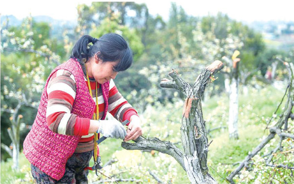 四川省华蓥市在禄市、华龙、明月等乡镇利用荒山荒坡、退矿复垦、撂荒地、滩涂,发展起近5万亩蜜梨、桃李、柑橘、枇杷等优质水果和海棠、紫薇、玫瑰、兰花等花木的生态产业,靓了乡村,富了农民。图为3月8日,明月镇“渠江画廊”的桃花山吸引着女性市民前来赏花、观景。