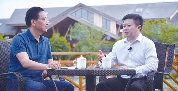 四川省内江市东兴区委书记康厚林(右)接受本刊记者专访 “抓好成渝主轴发展”“推动内江、自贡同城化,与重庆共建川南渝西融合发展试验区、承接产业转移创新发展示范区,支撑双城经济圈南翼跨越”……2021年,四川省委、省政府把成渝地区双城经济圈建设作为深入推进“一干多支、五区协同”发展的战略牵引。 战略牵引,牵一发而引动全局。5月27日,推动成渝地区双城经济圈建设重庆四川党政联席会议第三次会议召开,会