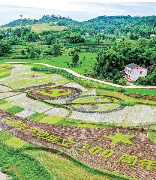 彩稻绘出建党百年祝福图