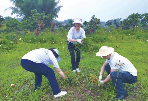 合江农商银行第一党支部志愿者队伍到达目的地后,随即分为调研组和劳动组两个小组。调研组负责具体了解农户需求,调研长江村村民对合江农商银行金融服务和金融产品的知晓程度,普及乡村振兴和惠农金融政策。调研内容包括存贷款业务、手机银行、服务评价等,同时还充分收集了农民对金融服务的意见和建议。劳动组则走进田间地头,体验农民生产劳动过程,主动帮助农户为果树清除杂草。通过亲身体验农事,志愿者们收获了喜悦,增长了见