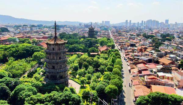 7月25日,中国世界遗产提名项目“泉州:宋元中国的世界海洋商贸中心”顺利通过联合国教科文组织第44届世界遗产委员会会议审议,成功列入《世界遗产名录》。图为7月9日,航拍开元寺。(蒋启明 摄)