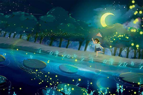 夏夜,斜躺竹床,凝望夏月,浪漫而惬意。而今栖居小城一隅,乡野纳凉望月,已近奢侈。 倾心清少纳言《枕草子》中风雅句子:“春天是破晓的时候最好,夏天是夜里最好,秋天是傍晚最好,冬天是早晨最好。”有如清风飒至,明月入怀。 闲暇归乡,晚霞凄美,夏夜姗姗来迟。故园木格窗外栀子飘香,荷风送凉,菰蒲凝绿,流萤冰蓝。 四方小院,土墙青瓦,院角有构树和柿树。丝瓜爬蔓,越过墙头。有麻雀在藤蔓间腾挪踢踏。院角