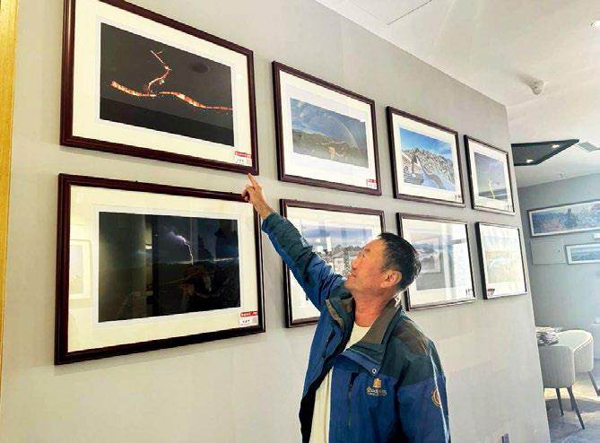 村民林长友介绍他拍的夜长城照片。 人民日报记者 智春丽摄 花楼沟村的摄影主题雕塑 人民日报记者 殷烁摄 青山如屏,公路如带,沟底有村,山上有“城”。什么城?万里长城。 这里是位于金山岭长城脚下的河北省滦平县巴克什营镇花楼沟村,因临近长城上的一座敌楼——“花楼”而得名。 村里人家,推窗见景。若问哪座是花楼?村民一抬手,就能在起伏的山脊间准确指出花楼的位置。 长城脚下的村子,因长城得名