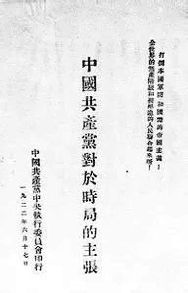中国共产党第一次对外公开发声,是1922年6月15日,中共中央发表《中国共产党对于时局的主张》。 由于中国共产党还处于地下状态,不可能通过公开媒体表达自己的主张,所以这一次的公开发声,是用印刷小册子四处散发的方式完成的。陈独秀在1922年6月30日写的《中共中央执行委员会书记陈独秀给共产国际的报告》中记载了这件事:“直奉战争后,由中央机关发布《中国共产党对于时局之主张》的小册子五千份,主张联
