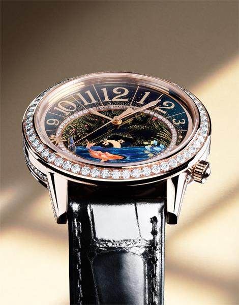 积家Rendez-Vous Sonatina Peaceful Nature约会系列妙音响时“静谧大自然” 腕表 - 锦鲤款 积家从数百年来以自然风光为描绘对象的悠久亚洲艺术传统中汲取灵感,为Rendez-Vous Sonatina 'Peaceful Nature'约会系列妙音响时“静谧大自然”腕表再添三款时计新作。其集中呈现积家得心应手的三项珍稀工艺(Métiers Rares®):