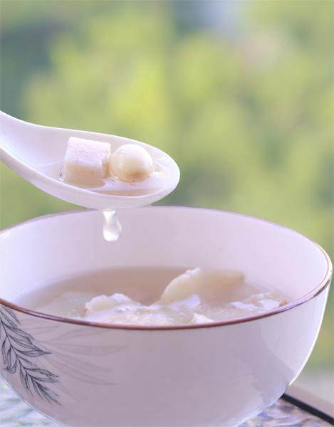 防寒:精萸暖肾汤 材料:黄精、熟地、麦冬各一两,巴戟天、山萸肉、桂圆肉各半両,干响螺头五个(或干瑶柱) ,蜜枣五粒,羊肉两斤(或瘦肉) ,生姜三片, 陈皮一小块,盐适量,清水十碗。 做法:所有材料洗净,陈皮浸软,刮掉内瓤。牛肉汆水,切厚件。麦冬浸水半小时,去芯。全部材料(盐除外)放煲内加清水用猛火煮沸,维持猛火滚约十分钟,以利材料出味,转中慢火煮三小时,加盐调味即可。 功效:滋阴补肾,益