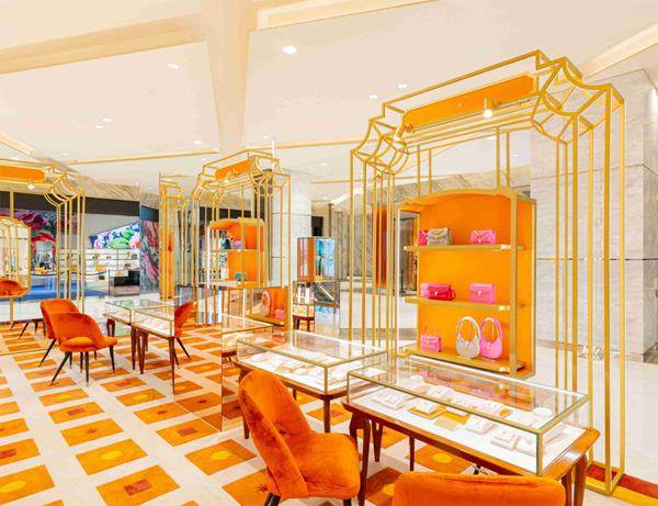 罗马欢愉注入魅力宁波BVLGARI宝格丽限时精品店璀璨入驻宁波阪急 年前,兼具华美设计与现代风范的意大利珠宝与腕表品牌BVLGARI宝格丽于宁波阪急隆重揭幕全新限时精品店。宝格丽为限时精品店精心打造了6座庄重典雅的橱窗,采用温暖藏红花色调丝绸衬里,烘托大气优雅气氛的同时,彰显了宝格丽绚丽辉煌的罗马渊源。走进店面,定制地毯映入眼帘。饰有正方形几何图案并采用醒目的藏红花色调,其间点缀圆形、正方形
