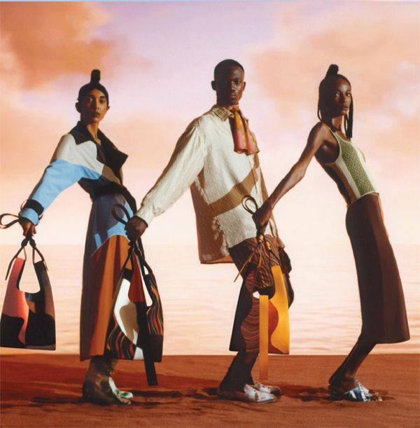 加勒比人辫发与印花 该系列通过别具一格的设计、鲜明大胆的色彩以及醒目迷人的图案,热情颂扬了加勒比人发型所展现的美学艺术、传统风情及象征意义,并娓娓讲述了Priya的个人故事。为该系列打造的“波浪”印花,以黑人传统的玉米辫技艺为灵感,通过缝线和拼接细节呈现。该系列多款包袋上还饰有定制的刺绣徽章,其中融合了黑人发梳、发辫等代表六、七十年代反叛精神的元素。 可持续材料制作 限量