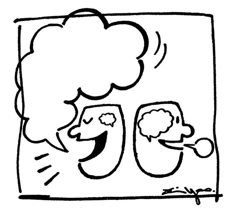无知者妄言,多智者慎言。 郑辛遥/画 (摘自《幽默与笑话》) 语言,表达善意时往往很匮乏,用于伤害时却锋利无比。 小黑孩/画 (摘自《杂文月刊》)