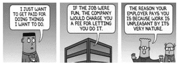 呆伯特职场漫画:关于工作和兴趣 员工甲:我只是希望在做想做的事情的同时得到薪水。 员工乙:老板付钱给你的原因是工作本身令人感到不适。如果工作充满乐趣,那么公司会反过来向你收取费用。 史考特 ·亚当斯/画 (摘自“海棠基金快讯 ”微信公众号) 政治的功能之一是合理而恰当地处置谎言 佚 名/画 (摘自搜狐网)