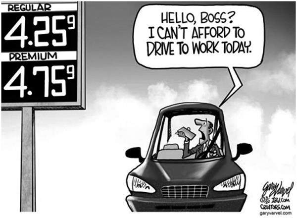 无奈 男子在加油站看到飙升的油价,打电话跟老板说:“老板,我今天没钱加油去公司上班了。” (原载美国《一周》周刊网站) 在糟糕的情况下做出好事 [英]约翰·霍尔克罗夫特/画 (摘自《读者》)