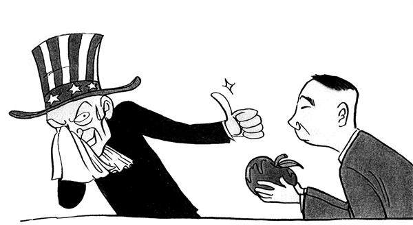 “谢”磨杀驴 美国表态称日本排核废水我们要感谢它,却同时禁止了日本的鲜奶及奶制品,蔬菜及蔬菜制品,鱼、肉、禽、海洋食品,大米、水果等等食品进入美国。也许日本也习惯了这样的骚操作? 崔 泓/画 (摘自《新民周刊》) 变脸术 王 铎/画 (摘自《杂文月刊》)
