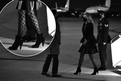 近两年来,国内对于女性穿衣自由的讨论越来越多。 从一开始“遇到性骚扰是不是你穿得太少”到“女生喜欢怎么穿就怎么穿,不需被定义”,对待美和衣着问题,社会整体观念明显在逐步开放。 然而前不久,美国第一夫人吉尔·拜登却因为穿了丝袜,引起了巨大的争议。 第一夫人爱穿啥? 2021年4月1日,第一夫人吉尔被拍到一身黑色装扮,穿着小皮裙,脚踩高跟靴出现在马里兰州的安德鲁斯空军基地。 最吸引眼球的是,