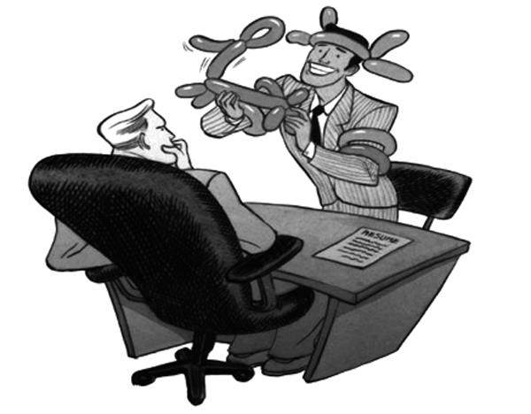 讨好 在老板面前卖弄讨好,口若悬河,殊不知自己就像小丑,早已被老板看透。要知道真正聪明的人从不炫耀才华,尤其在领导面前。 北京画室/画 (摘自网易网) 荒岛不孤 李景山/画 (摘自《幽默与笑话》)