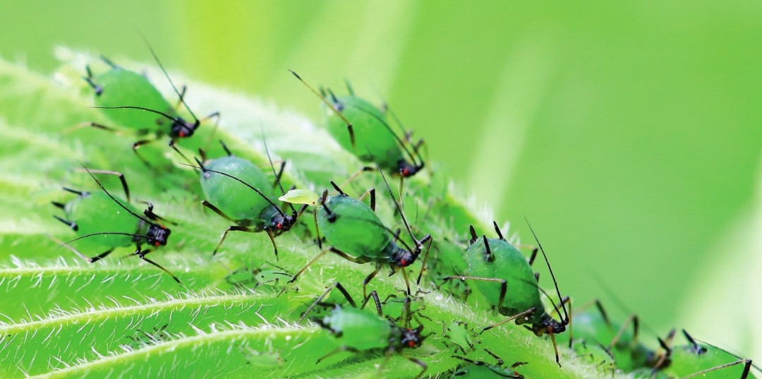 蜜虫的学名叫蚜虫,但我老家的乡亲们哪里知道这个,都称它“蜜虫”,对其缘由我也不曾追根究底。后来在电视上看到蚂蚁“放牧”蚜虫的场景,再后来在现实中也拍到了这样的画面,才琢磨出缘由一 二 —蚂蚁自愿做蚜虫的“保镖”,以此来换取蚜虫的分泌物。说是分泌物,却是甜的、明晃晃的。我看到蚂蚁在蚜虫群中不停地转悠,发现分泌物之后,马上吃掉。我又回想起,一群蚜虫占领的植物上总是有一层黏糊糊的胶状物,