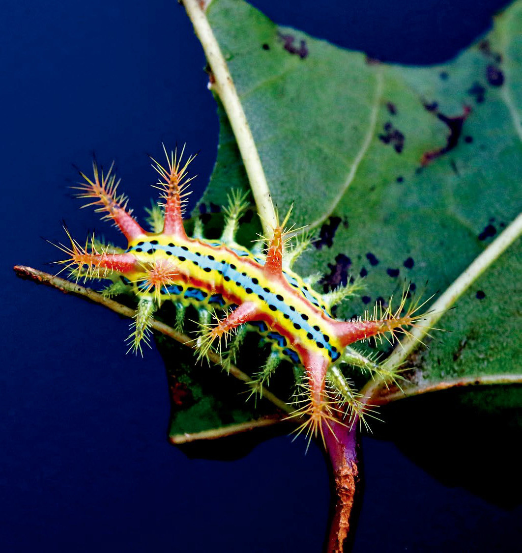 “卤水点豆腐,一物降一物”,说的是万物相生相克,也说的是世界的神奇。 有没有在这个法则之外,不受约束的呢?比如说,刺蛾幼虫。我曾经以为,它们虽小,却是自然界的“霸王”,无法无天,那一身小刺胜过狮虎的尖牙利齿。我们这代人大概没几个没体验过它们那身微型峨眉刺的厉害。对刺蛾幼虫的记忆,往往能保存到几十年之后。我见过不少成年人,看到刺蛾幼虫满脸惊慌,急忙避开,细问,原来是小时候被蜇过。这