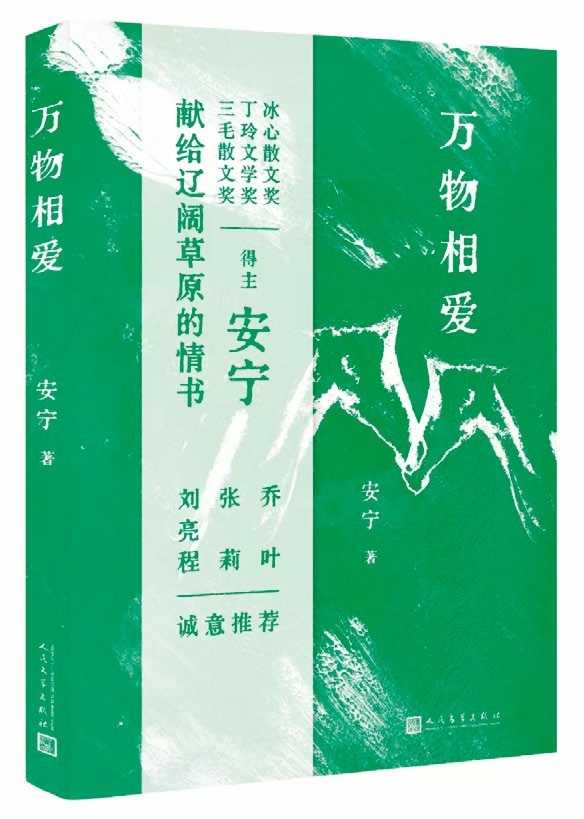 万物相爱 安宁 著 类型:散文 人民文学出版社 2023年7月 《万物相爱》是作家安宁在对内蒙古广袤苍凉又开阔诗意的审美认知下,历时三年完成的自然主题散文集。作品文风开阔浩荡,气息丰沛盎然,饱含着作家对世间万物的热爱。就在辽阔大地幽微起伏的褶皱中,万千生命散发寂静光芒。作家以谦卑朴素之姿,引领读者思考人与自然、生与死、宇宙星空等永恒主题,并重新认知自然万物对人类诗意栖居的重要