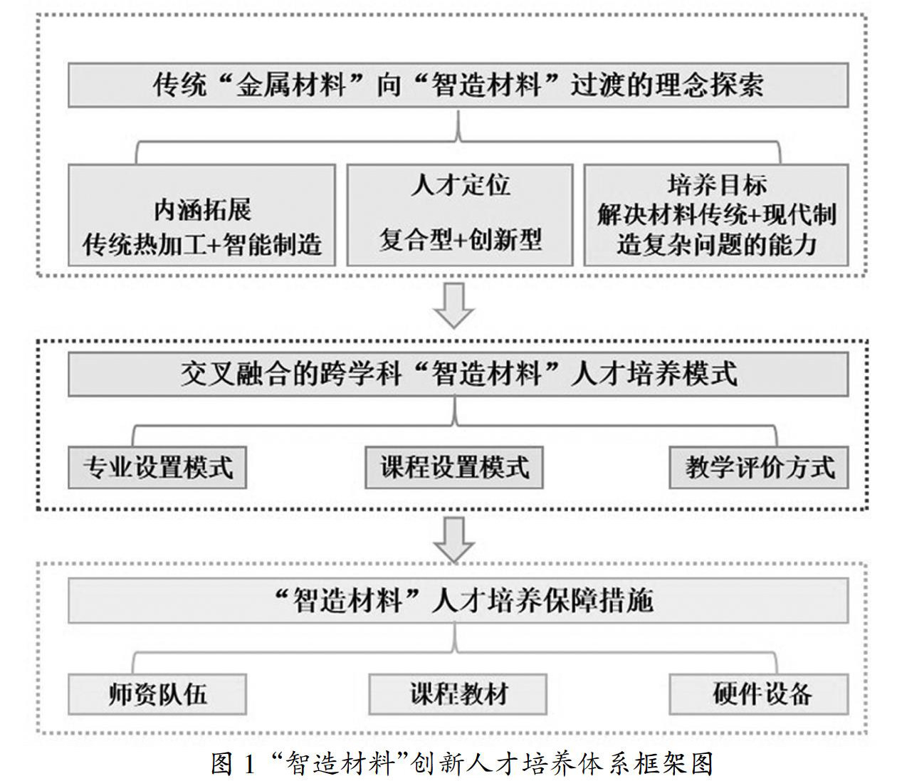 摘 要:国际对智能制造技术日益重视,然而高校传统材料专业在支撑智能制造相关领域技术人才培养方面凸显薄弱。文章结合西安工业大学“金属材料工程”国家级特色专业改造升级实践,论述了“中国制造 2025”背景下材料学科与机械学科交叉融合的必要性,提出了金属材料工程与智能制造的跨界融合契入点,建立了包含理念探索-人才培养模式-保障措施的“智造材料”创新人才培养体系。 关键词:材料学科;金属材料工程;智能