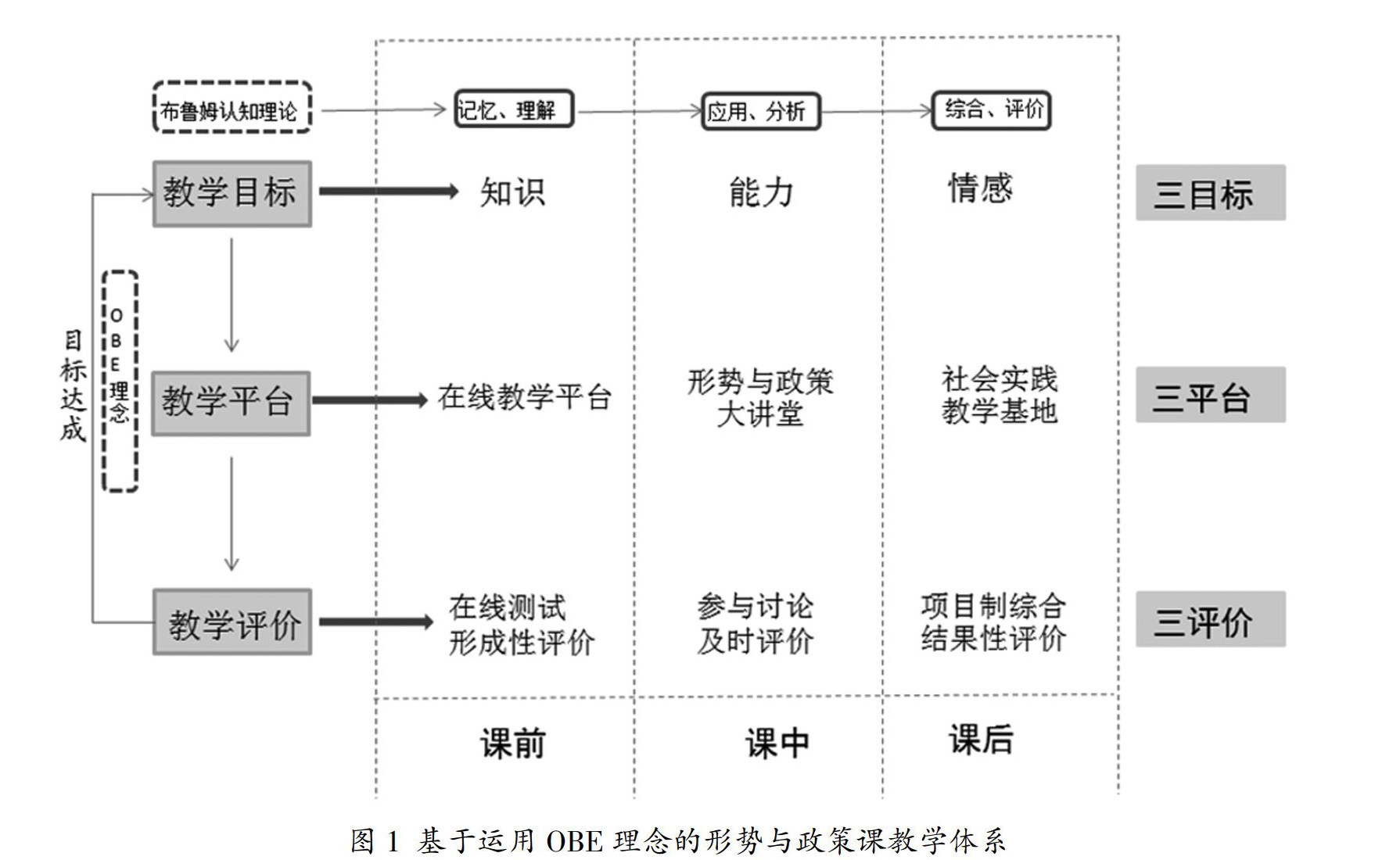 摘 要:“形势与政策”课是高校思想政治理论课的重要组成部分,肩负着新时期认清历史方位、把握国际坐标、立足中国现实的教育使命。OBE作为一种基于学习产出和持续改进的教育理念,为推动地方应用型高校“形势与政策”课教学设计与模式创新提供了新思路和新方法。成都工业学院运用布鲁姆认知理论,将“以学生为中心、成果导向、持续改进”贯穿于“形势与政策”课程建设全过程,探索建构“3+3+3”——“三目标三平台三评