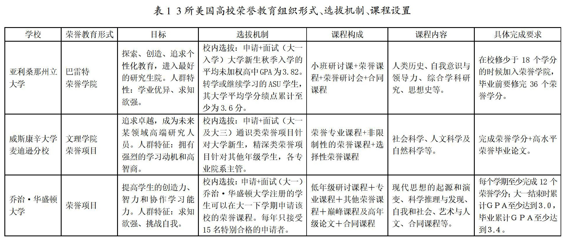 摘 要:荣誉教育是大众化教育时代培养优秀本科拔尖学生和精英人才的个性化教育模式。文章通过培养目标、选拔机制、课程体系与修读方案等方面分析,对美国具有代表性的公立研究型大学荣誉项目及中国一流高校荣誉教育的发展和现状进行了比较,提出国内高校荣誉教育在滚动机制、培养模式和建立健全荣誉学位等方面进一步规范和建设的一些思考。 关键词:荣誉教育;拔尖人才;一流大学;荣誉学位 中图分类号:G640