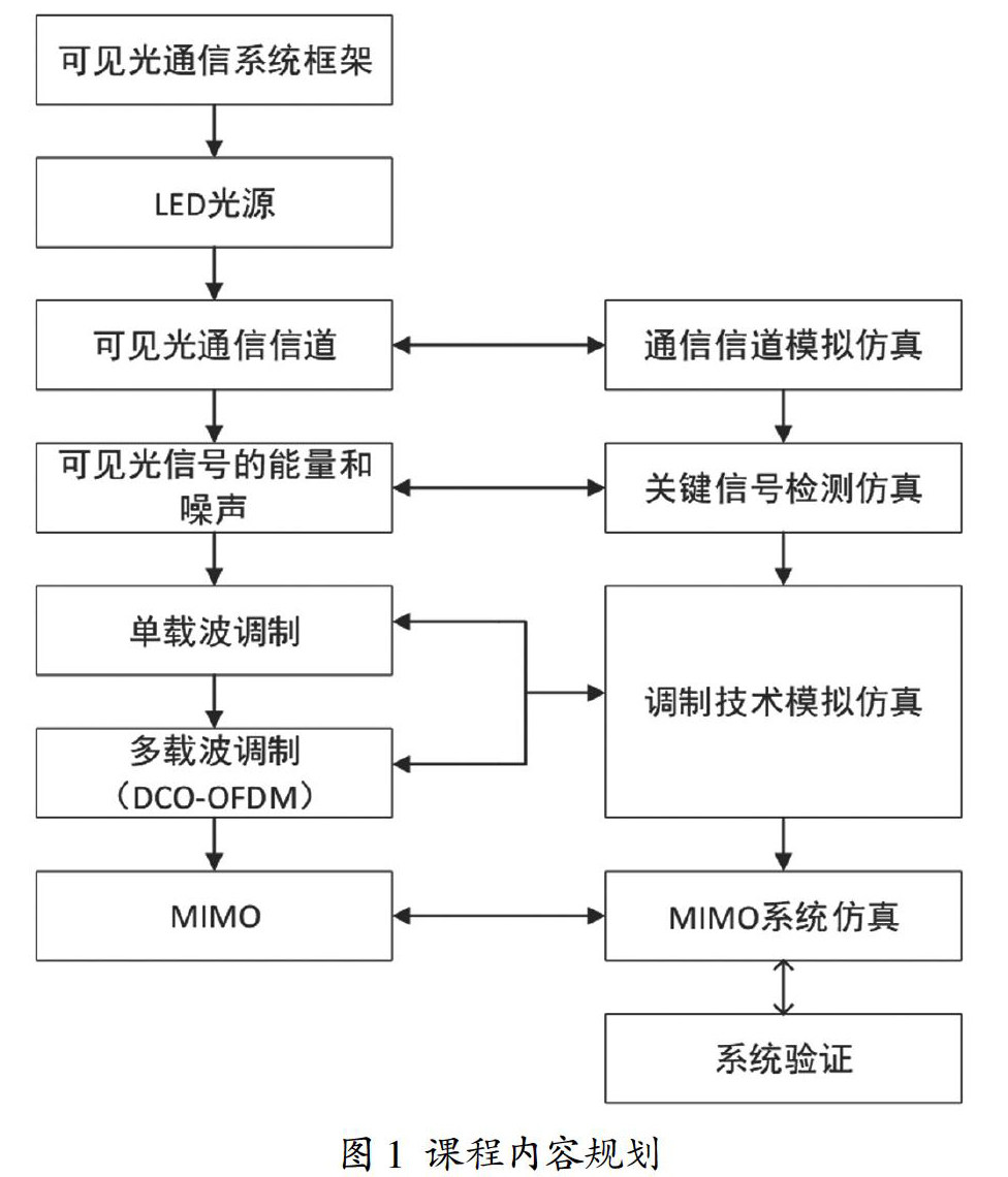 摘 要:可见光通信作为一门通信工程专业的选修课,代表了通信的前沿技术,目前在国内专门开设这门课程院校不多。本课程采用理论加实验的教学模式,旨在提高学生的归纳总结能力、数学建模能力、解决实际系统问题的能力,梳理通信专业的体系结构。在可见光通信课程的教学实践中,对课程内容进行了合理的规划,适当安排课时,梳理了课程的重点和难点。从概括到具体、从理论到仿真、从模拟到验证,充分发挥学生的自主性、参与性和创
