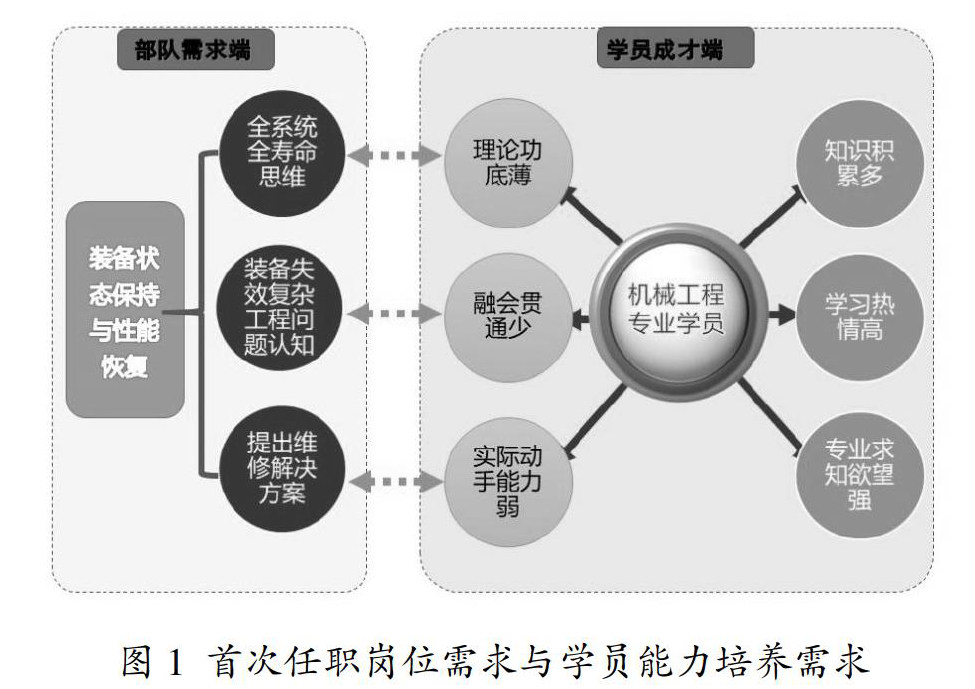 摘 要:针对实战化装备状态保持和首次岗位任职能力相结合的需求,瞄准“后续课程实用、到岗位后管用”两个期望,聚焦学员理论功底薄、知识融会贯通少、理论联系实际少的问题,将问题聚焦到突出全系统全寿命思维、装备失效复杂工程问题认知、装备维修解决方案提出能力培养的探索实践上来。通过坚持面向部队保障需求、围绕首次岗位能力需求和专业背景需要,优化重组课程内容;突出学为中心,把握“清精新深”原则,探索了维修保障