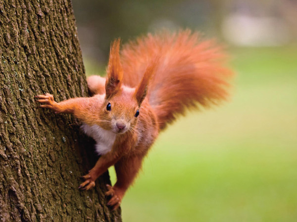 别小看松鼠的尾巴!松鼠在树上跳来跳去的时候,它的尾巴发挥了很大的作用。 在跳跃时,大尾巴可以帮助松鼠保持平衡、控制方向,还可以加大松鼠的跳跃距离。把尾巴挺直,便可以轻松跳出很远,这是松鼠的特殊技能之一,可以在遇到天敌时快速逃脱。从高处跳下时,大尾巴起到了降落伞的作用,增加松鼠受到的空气浮力,这样落地时速度会变得比较慢,保证松鼠的安全。 此外,冬天的时候,这条大尾巴便成了松鼠过冬的神器,紧紧围着