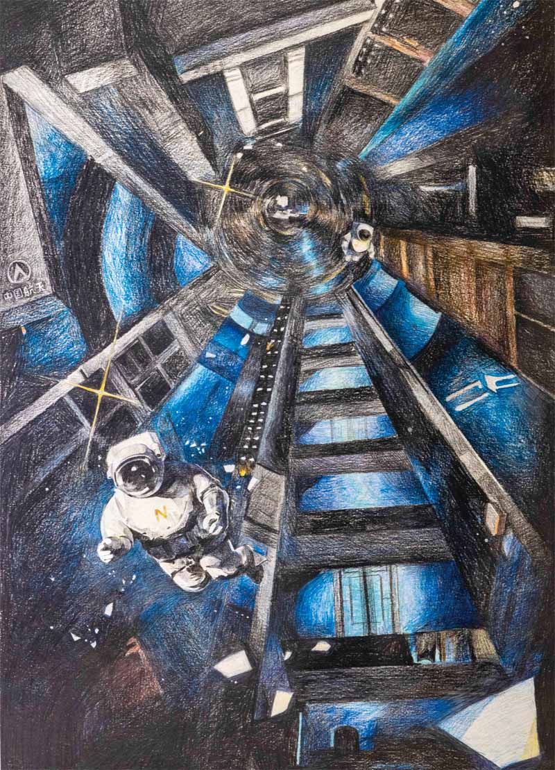 老人看向窗外那一片深蓝色的浩瀚星海,星海中正静静悬浮着一面“红旗”,五颗金星比这星海更为闪亮。 那是他的国,是了,中国。 现在他所处的地方是星际疗养院,在这没有重力的太空中,这是“红旗”空间站的一角,眼下这个令人震撼的工程,也仅花费了30 年。温暖的白色空间里,老人从虚拟屏上看到了孙女的小脸。阳光从电子传感屏中透出,组成了带着温度的粒子束,照在他摊开的手心上,暖得惬意。与他的时间相反,窗外的恒