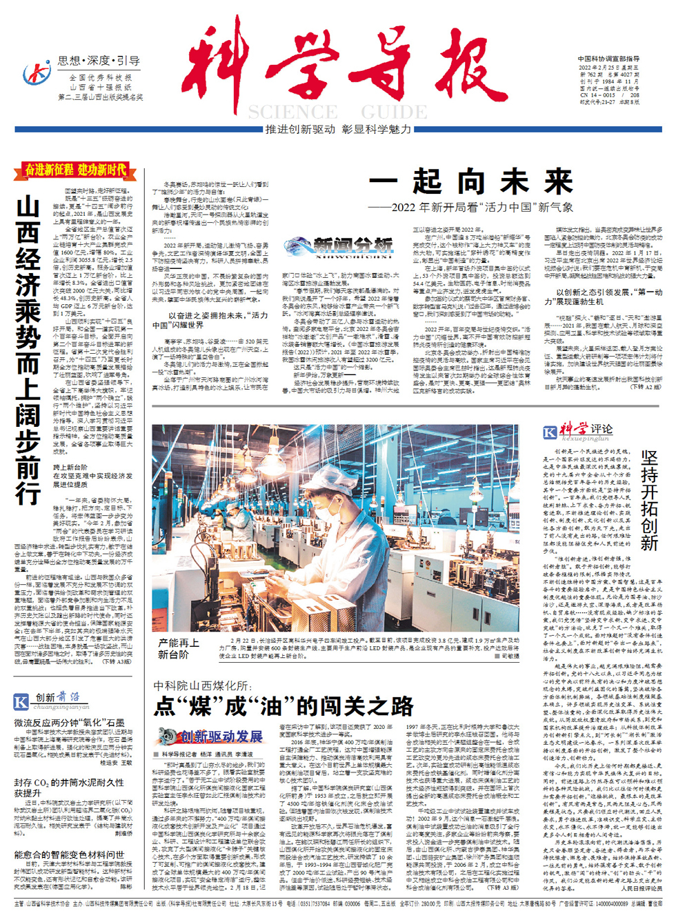 冬奥赛场,苏翊鸣的惊世一跃让人们看到了“雄狮少年”的活力与自信; 春晚舞台,行走的山水画卷《只此青绿》一舞让人们感受到曼妙灵动的传统文化; 浩瀚星河,天问一号探测器从火星轨道发来的新春祝福传递出一个民族热情澎湃的创新活力; …… 2022年新开局,运动健儿激情飞扬、奋勇争先,文艺工作者深情演绎华夏文明,全国上下防控疫情坚决有力,科研人员拼搏奉献、昂扬奋进—— 风华正茂的中国,不畏纷繁复杂