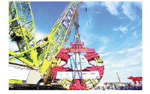 江苏泰州:国内最大直径盾构机成功下井