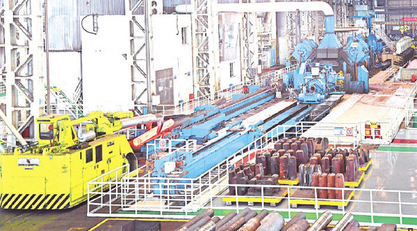 2月24日,中国宝武太钢集团型材厂径锻工序正在生产新开发的产品。太钢集团强化科技创新,产品与技术开发能力持续提升,去年完成新产品开发较上年增长55%,创效1.7亿元。 王旭宏摄