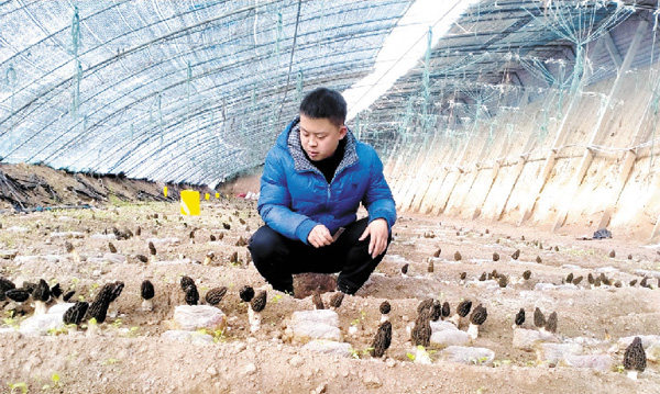 2月28日,董帅正在大棚里查看羊肚菌长势。优化农作物种植结构,结合市场需求,山西农业大学毕业生董帅发展羊肚菌与西瓜结合菌瓜轮作的特殊种植模式,既丰富了市民的“菜篮子”,又鼓了“钱袋子”。 郭亚妮摄