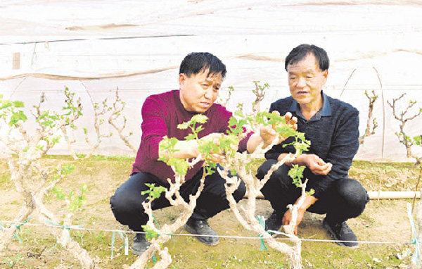 2月20日,稷山县农业农村局高级农艺师郑精杰在滨河葡萄示范园指导农民对葡萄进行抹芽定梢和病虫害防治。去年以来,稷山县积极引导农民转变种植模式促进葡萄产业转型发展,引进葡萄大棚多膜覆盖栽培技术,在滨河葡萄示范园推广100余亩,通过覆盖四层膜增加葡萄大棚内温度,促进葡萄提早发芽,使大棚葡萄比露地葡萄早上市50天以上,价格增长2.5倍以上。同时以施有机肥、控产提质和标准化管理,提高葡萄品质,生产优质无公