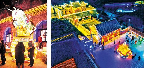 走进灯光隧道,仿佛穿越千年时空,触摸着古老的砖石,走进“宫”内,院落的合理布局,丰富的窑洞文化,曲径通幽的各式通道,纵横交错的地下暗道,让人目不暇接,流连忘返。 2月26日,《科学导报》记者来到位于古城平遥西南方的横坡村。远观对面山坡,林海松涛,绿水青山。夜幕降临时分,映入眼底的横坡古村又是另一番景象——五彩缤纷,霓虹闪烁。平遥县段村镇横坡村党委书记郭兴峰向记者介绍,“横坡古村大型实景灯光秀,是