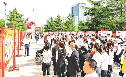 5月23日,运城市民参观“建党百年卫健事业成就展”。为深入推进党史学习教育,该市举办建党百年卫生健康事业成就展,142块展板全面展现了建党以来运城市卫生健康事业的发展成就,引导广大党员干部和医务工作者知史爱党、知史爱国、知史爱岗,不断汲取坚定前行的力量。