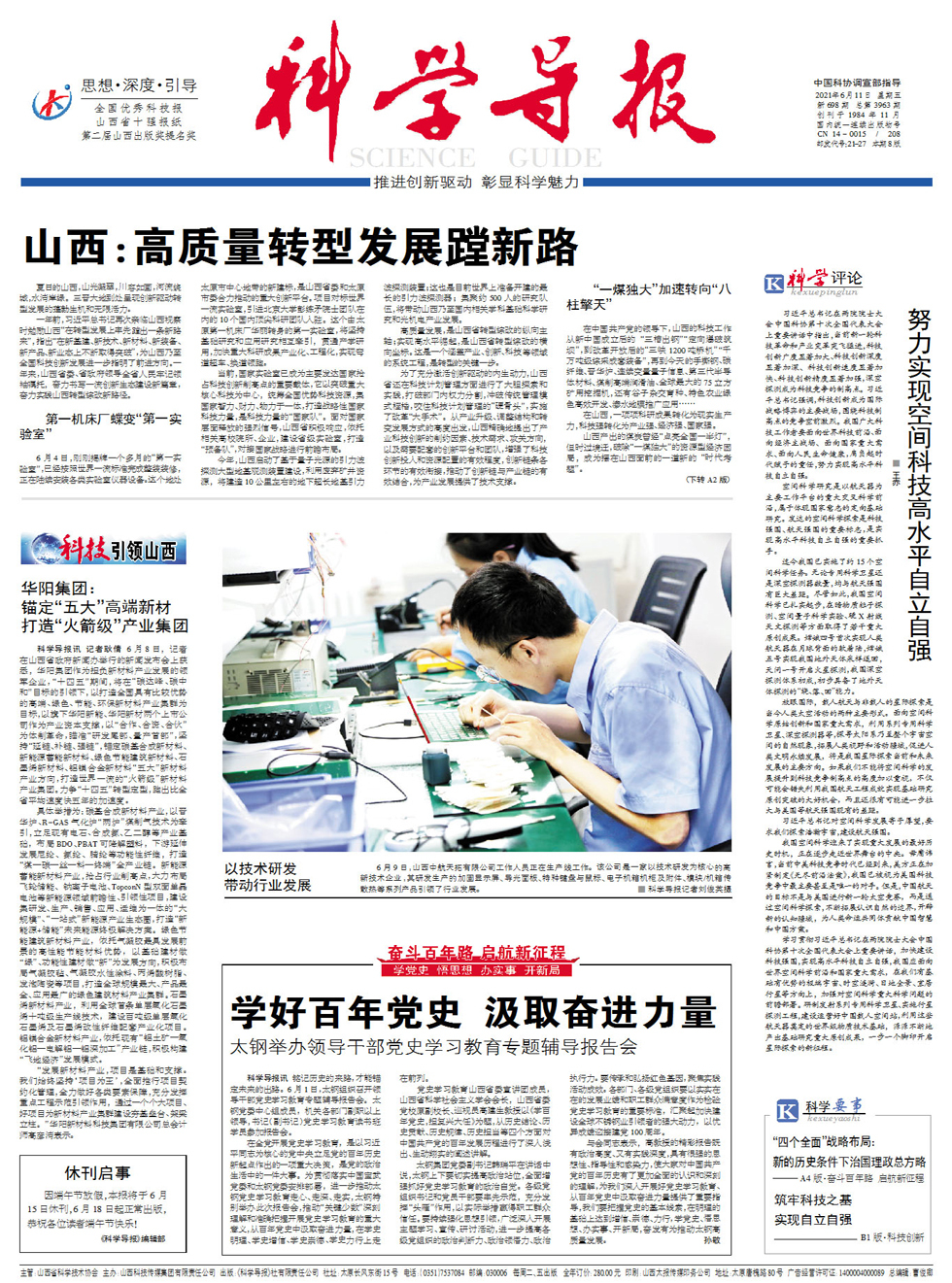 科学导报记者刘俊英摄 6月9日,山西中航天拓有限公司工作人员正在生产线工作。该公司是一家以技术研发为核心的高新技术企业,其研发生产的加固显示屏、导光面板、特种键盘与鼠标、电子机箱机柜及附件、模块/机箱传散热等系列产品引领了行业发展。