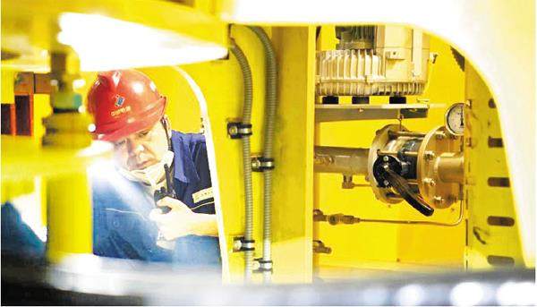 胥冰洁摄 6月8日,在白鹤滩水电站左岸机房,工作人员在观察1号机组运转情况。金沙江白鹤滩水电站首批机组于6月28日安全准点投产发电。白鹤滩水电站是实施“西电东送”的国家重大工程,是当今世界在建规模最大、技术难度最高的水电工程。